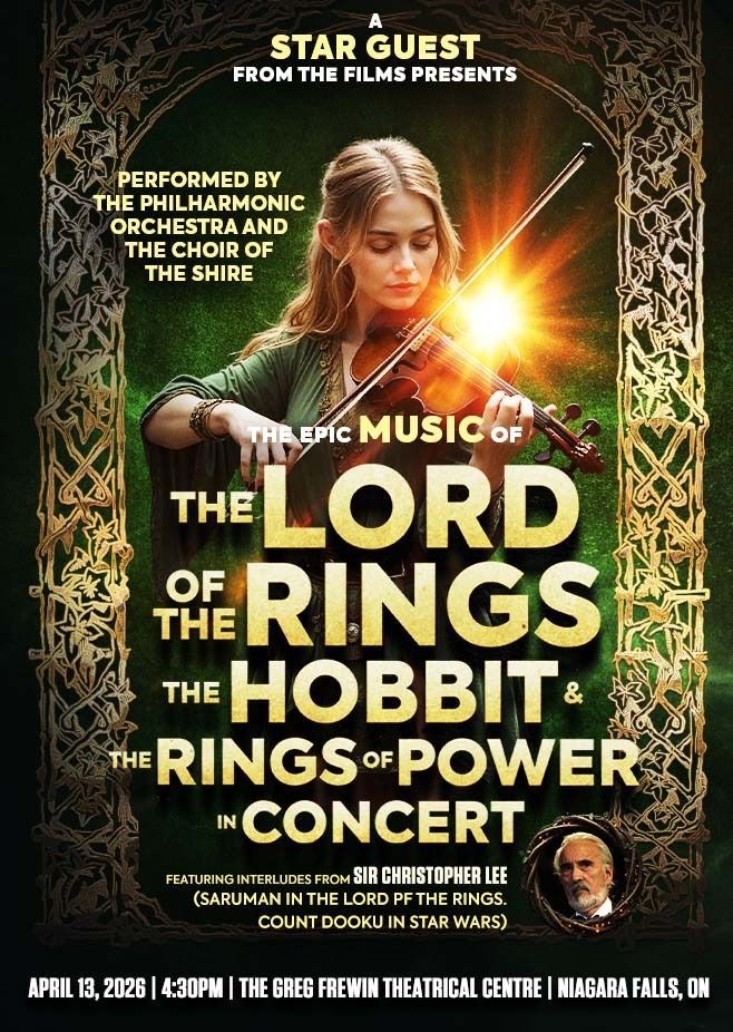 Join us Mon. April 13th, 2026 for this spectacular production brings the epic music of The Lord of the Rings, The Hobbit, and The Rings of Power to life on stage — performed by the Philharmonic Orchestra and the Choir of the Shire, accompanied by world-class soloists and dramatic theatrical staging.